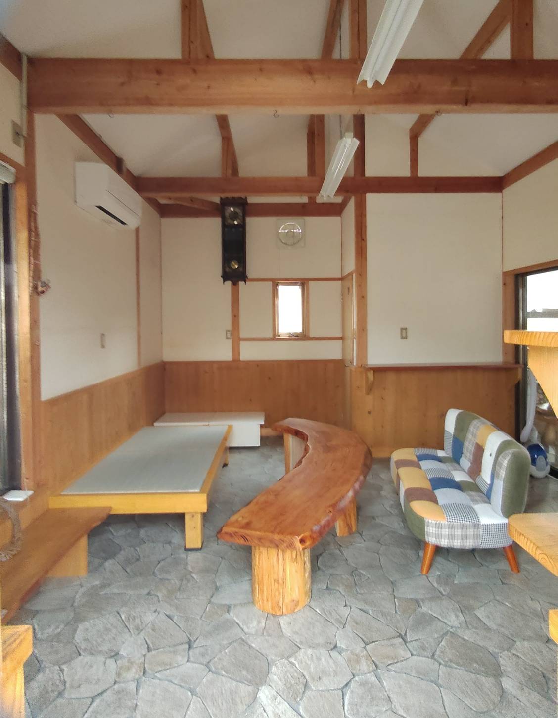 陶芸窯の処分したついでに部屋の土間にクッションフロアを貼ってもらったり、自宅にあったテーブルにしようと思って置いてあった木に足をつけてもらい、塗装もしていただき大変気に入っています。ありがとうございました。